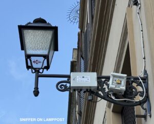 - Sniffers, to detect the origin and destination of tourist flows, that cover a strategic area including Ponte Santa Trinita, Ponte Vecchio, Piazza Pitti, Piazza Santo Spirito, Piazza della Passera, and Via Tornabuoni.